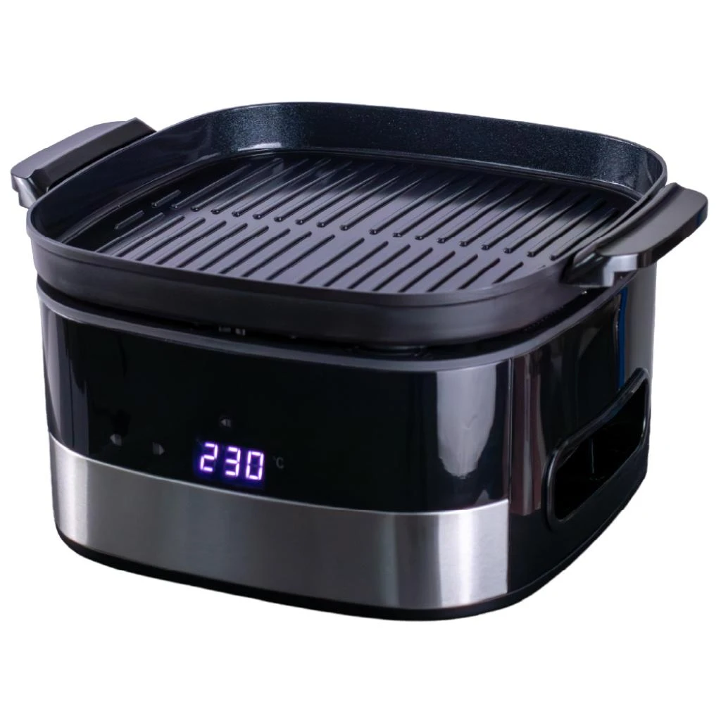 - Panel de control digital: Control de temperatura de 80-200°C para la freidora y 160-230°C para el grill.