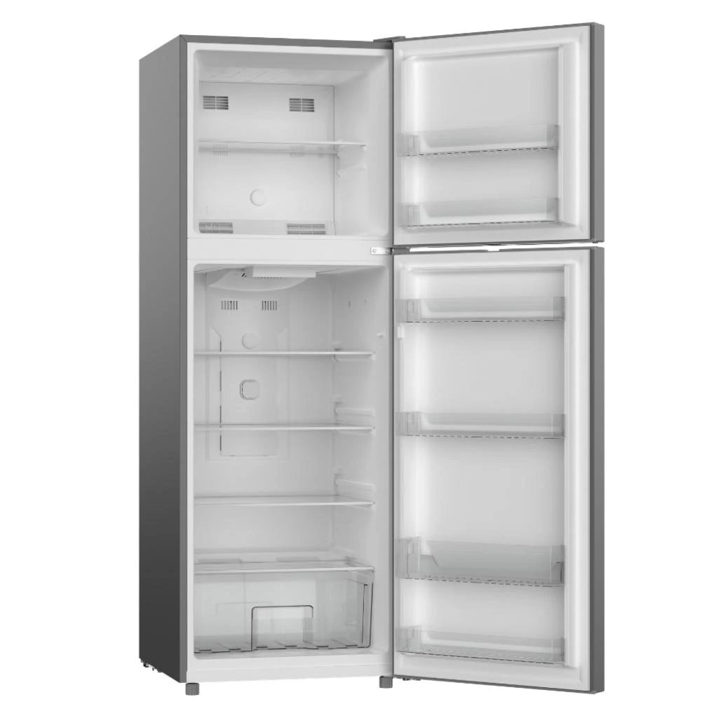 Su diseño de dos puertas con freezer superior permite una organización eficiente, mientras que su capacidad de 420 litros es ideal para familias numerosas. Cuenta con estantes de vidrio templado ajustables, iluminación LED interna y control mecánico de temperatura para un uso práctico y eficiente.